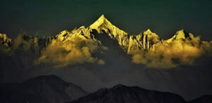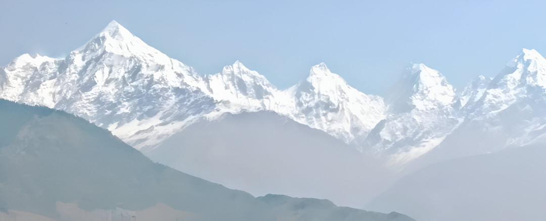 সকালে উঠে পড়ে গরম জলে মুখ ধুয়ে বাইরে উঁকি মারলাম। সামনে আকাশে আবছা কিছু পাহাড়। গতরাতে বৃষ্টিতে মেঘ একেবারে নেই। দেখি অন্য ঘর থেকেও সবাই উঁকি মারছেন। তারপর ধীরে ধীরে অরুনোদয় হলো। পাঁচটি শৃঙ্গ কিছুটা পরিষ্কার দেখা যাচ্ছে। সব কম্বল জড়িয়ে তখন সামনের টেরেসে।
