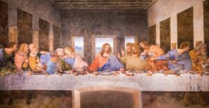 ভেতরে ঢুকে একটা প্যাসেজের ভিতর দিয়ে খানিক হেঁটে যখন সেই বিখ্যাত ছবির ঘরে পৌঁছেছি, পেটের ভিতর দিব্যি গুড়গুড় টের পাচ্ছি। কী হতে চলেছে না জানা থাকলে উত্তেজনায় যেমনটা হয় আর কী! এই ছবিটা আসলে একটা ডাইনিং হলে রাখা। সেখানে দুটো আসল ডাইনিং টেবিলও আছে। আর ভিঞ্চির ছবিটা একদিকের দেওয়ালে করা যাতে মনে হয় সেটাও ওই ঘরেরই এক অংশ এবং যীশুখ্রীষ্ট সেখানে শিষ্যদের সাথে খেতে বসেছেন। এই কাজটি নাকি কমিশনড কাজ মানে অর্থের বিনিময়ে অন্যের জন্য করা। তখনকার দিনে ট্রেনডিং ফ্রেস্কোর কাজ করতে তেমন আগ্রহী ছিলেন না বলেই নাকি দ্য ভিঞ্চি এই ছবিটি আঁকেন। ছবিতে বহুবার রেস্টোরেশনের কাজ হয়েছে। এইটা টেম্পোরা পেইন্টে করা সরাসরি দেওয়ালের ওপর যা কিছুদিনেই আস্তে আস্তে উঠে যাচ্ছিল যে কারণে বিভিন্ন সময় একে আবার পেইন্ট করাতে হয়েছে।